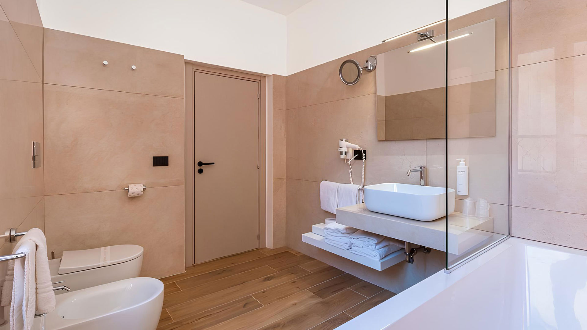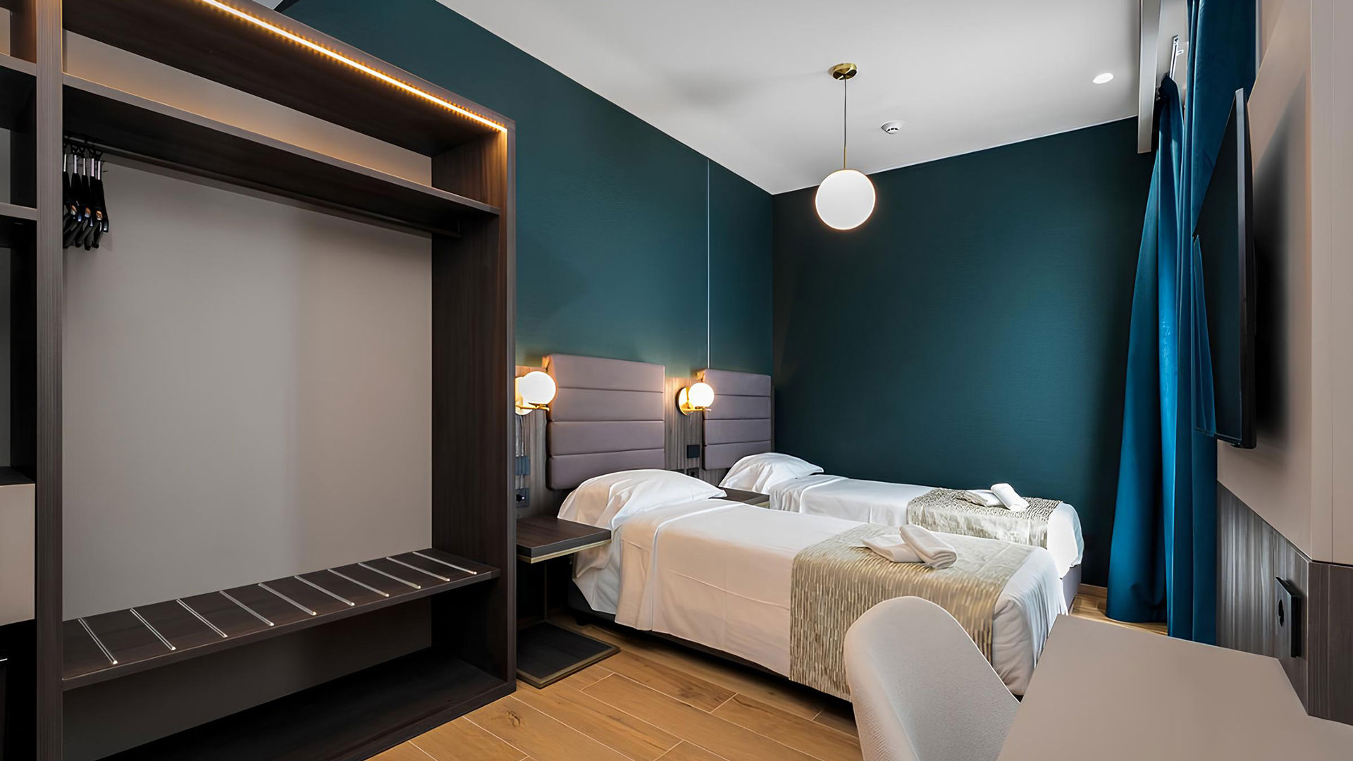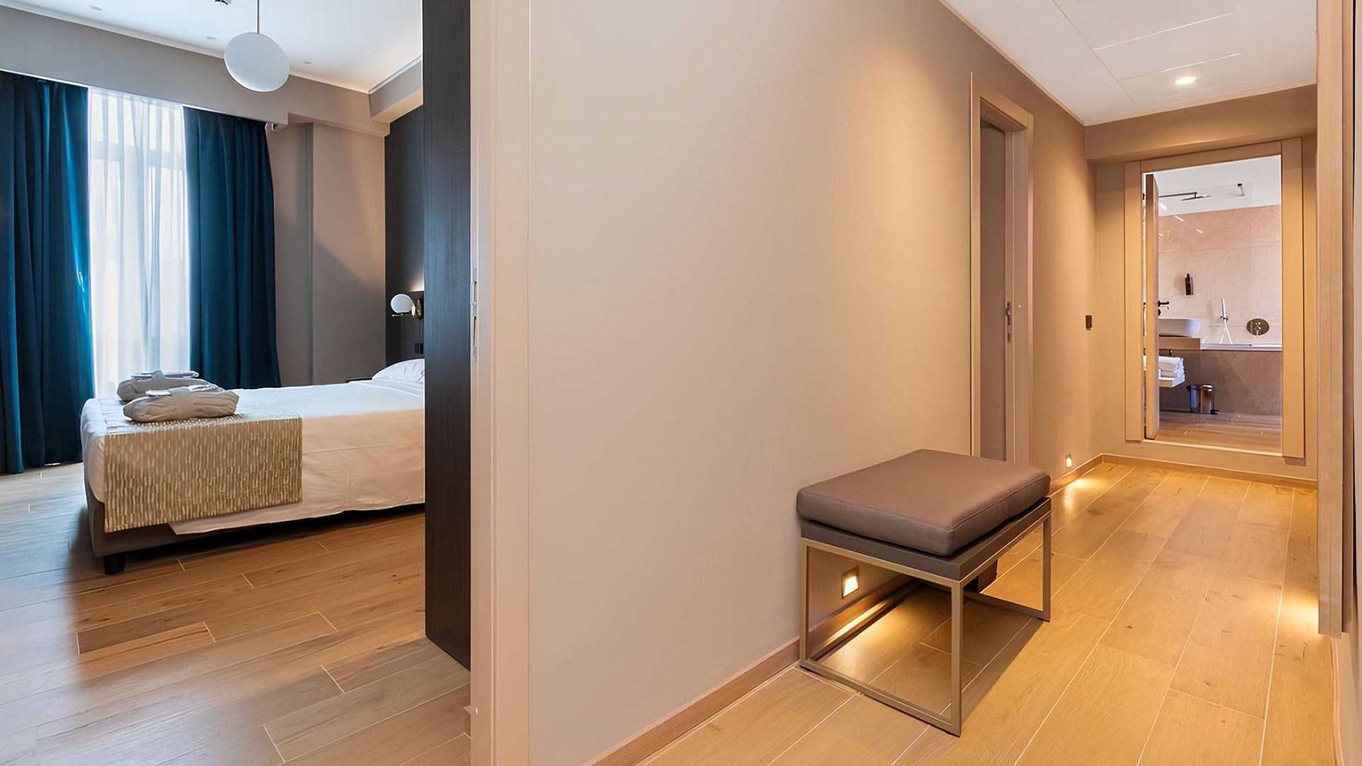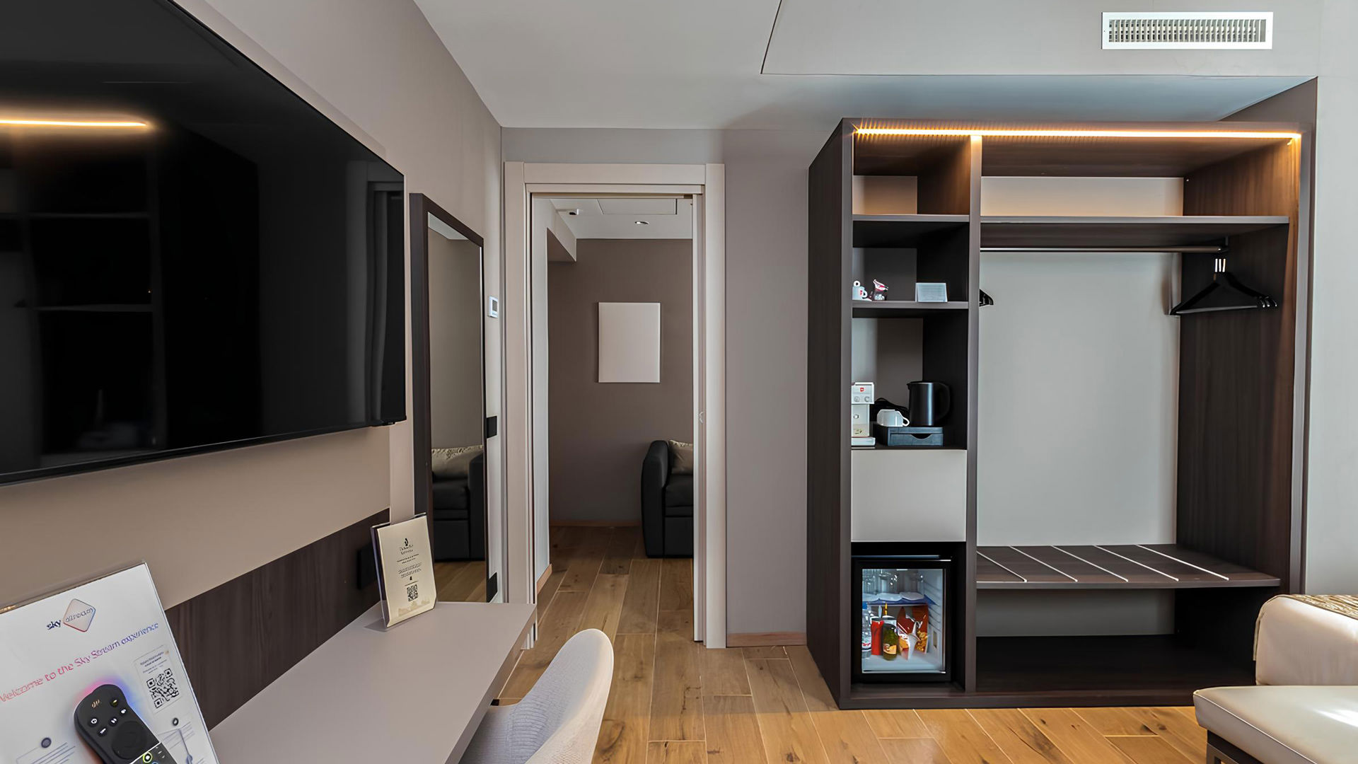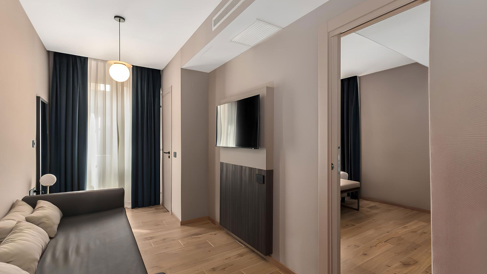 The Suite is a 30 sq m accommodation, consisting of: a room with a double bed and a room with two single beds. These rooms feature air conditioning, safe, LCD TV 43’’, free Wi-Fi, minibar, private bathroom with shower, hairdryer, complimentary toiletries, kettle, coffee machine, bathrobe.